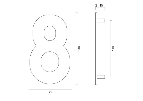 Diese Hausnummer "8" ist aus Edelstahl gefertigt und daher sehr gut für den Außenbereich geeignet.