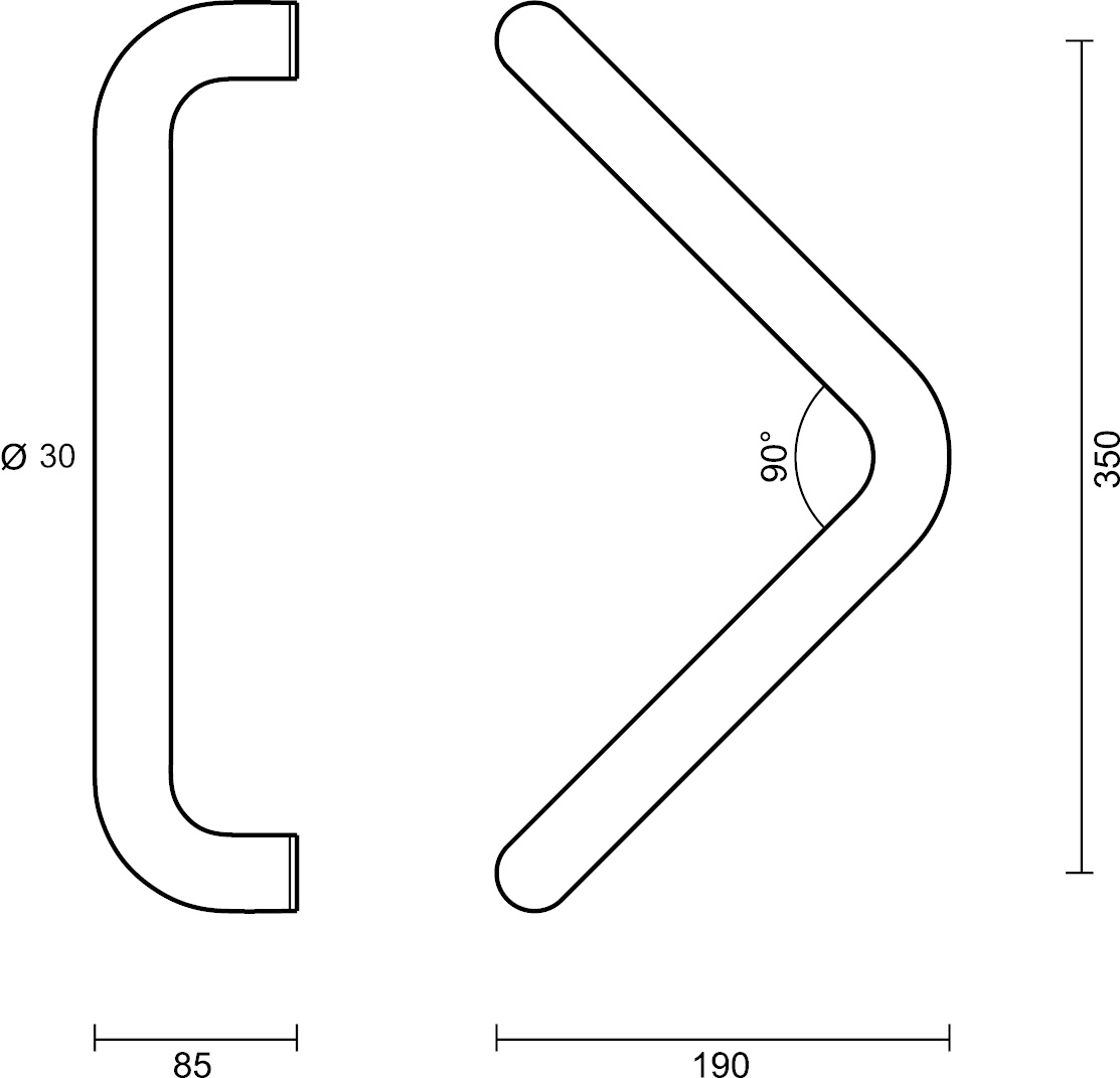 Es handelt sich um einen einzelnen Türdrücker mit einem Durchmesser von 30 mm und einer Achsgröße (HoH) von 350 mm.