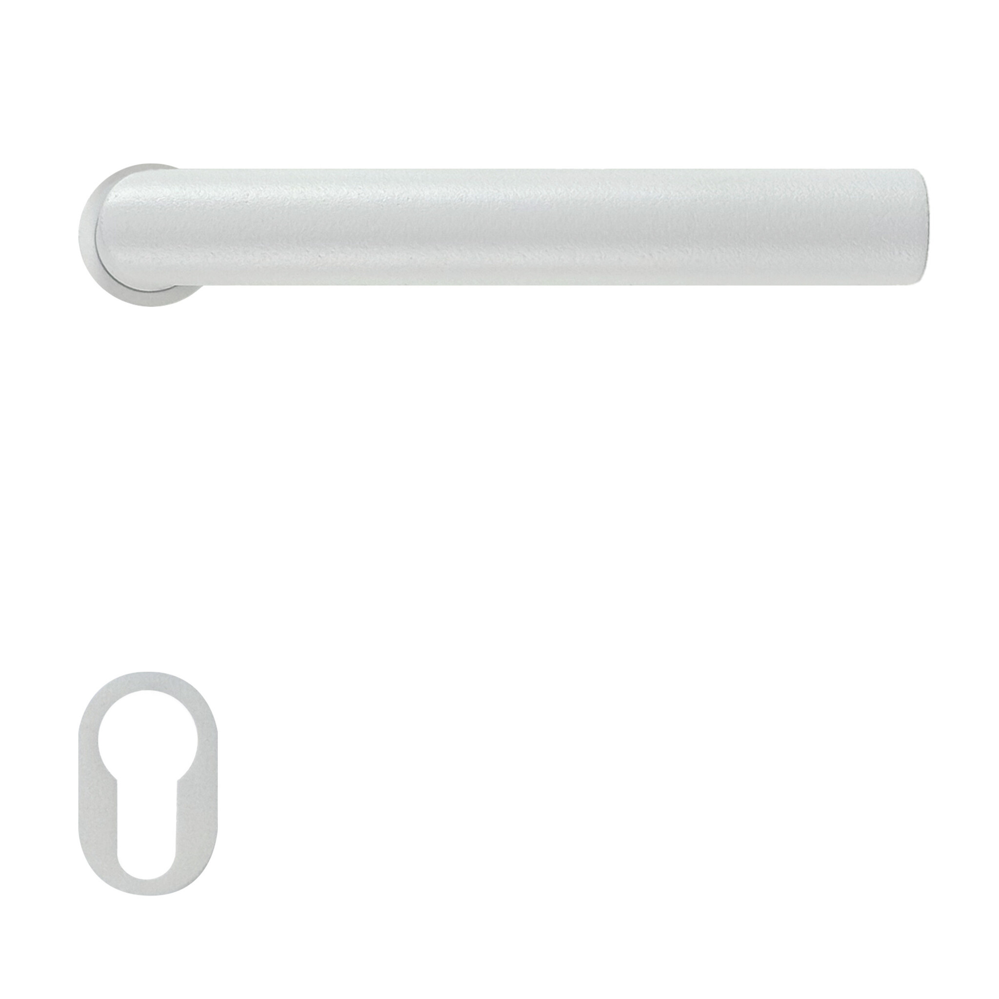 Beschreibung Paar weiße I - SHAPE 19 mm strukturierte Türgriffe - minimalistische Rosette Ø 25 mm geeignet für Innentüren.