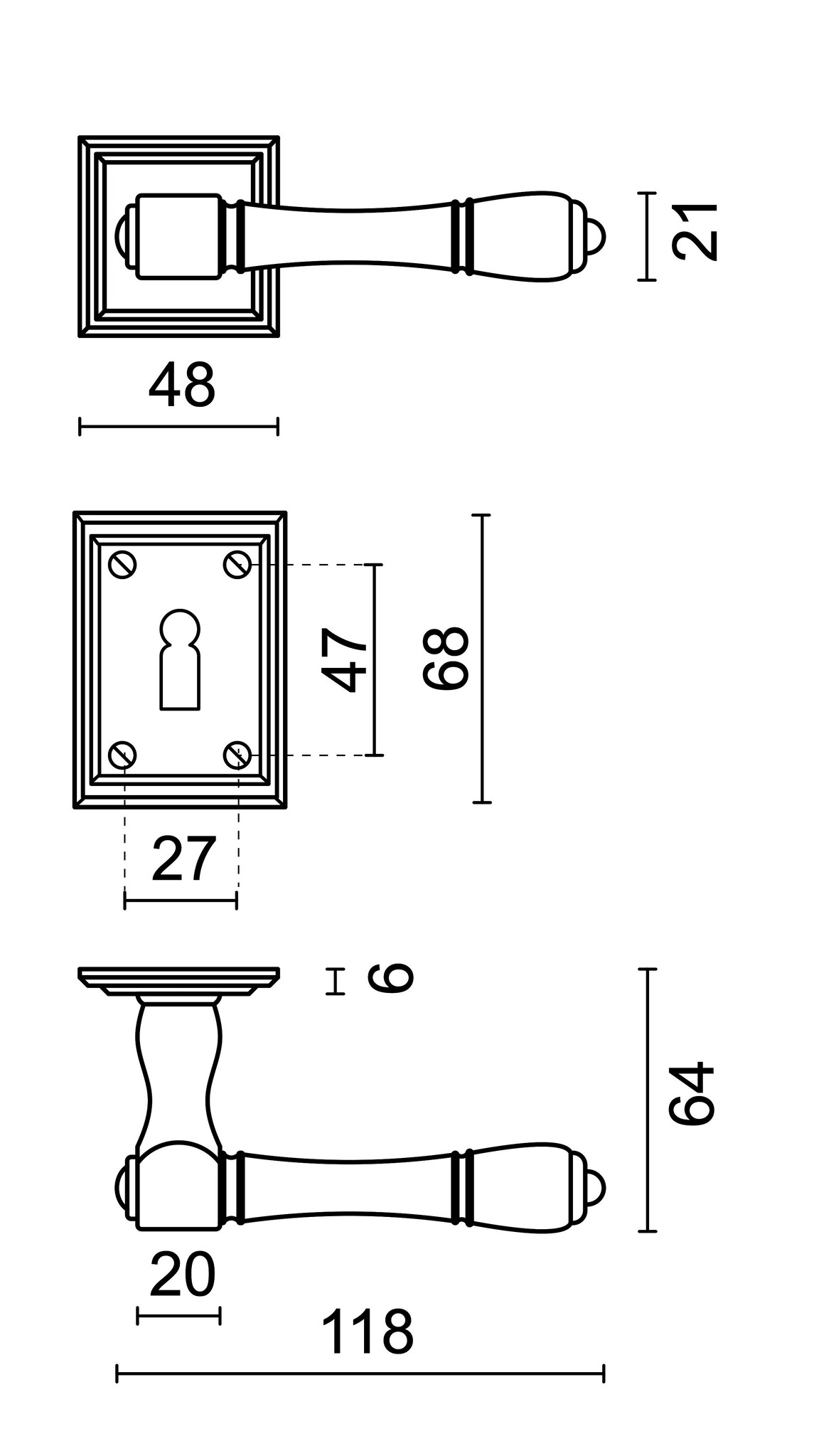 Beschreibung Rostfarbene Türdrückergarnitur 'Carre' auf eckiger Rosette in 4 Varianten erhältlich