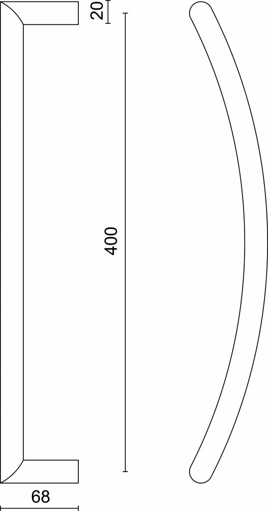 Dieser einzelne Türgriff aus Edelstahl hat eine Dicke von 20 mm und eine Achsgröße von 400 mm. In seiner Gesamtheit kommt dieser Türgriff 60 mm nach vorne.