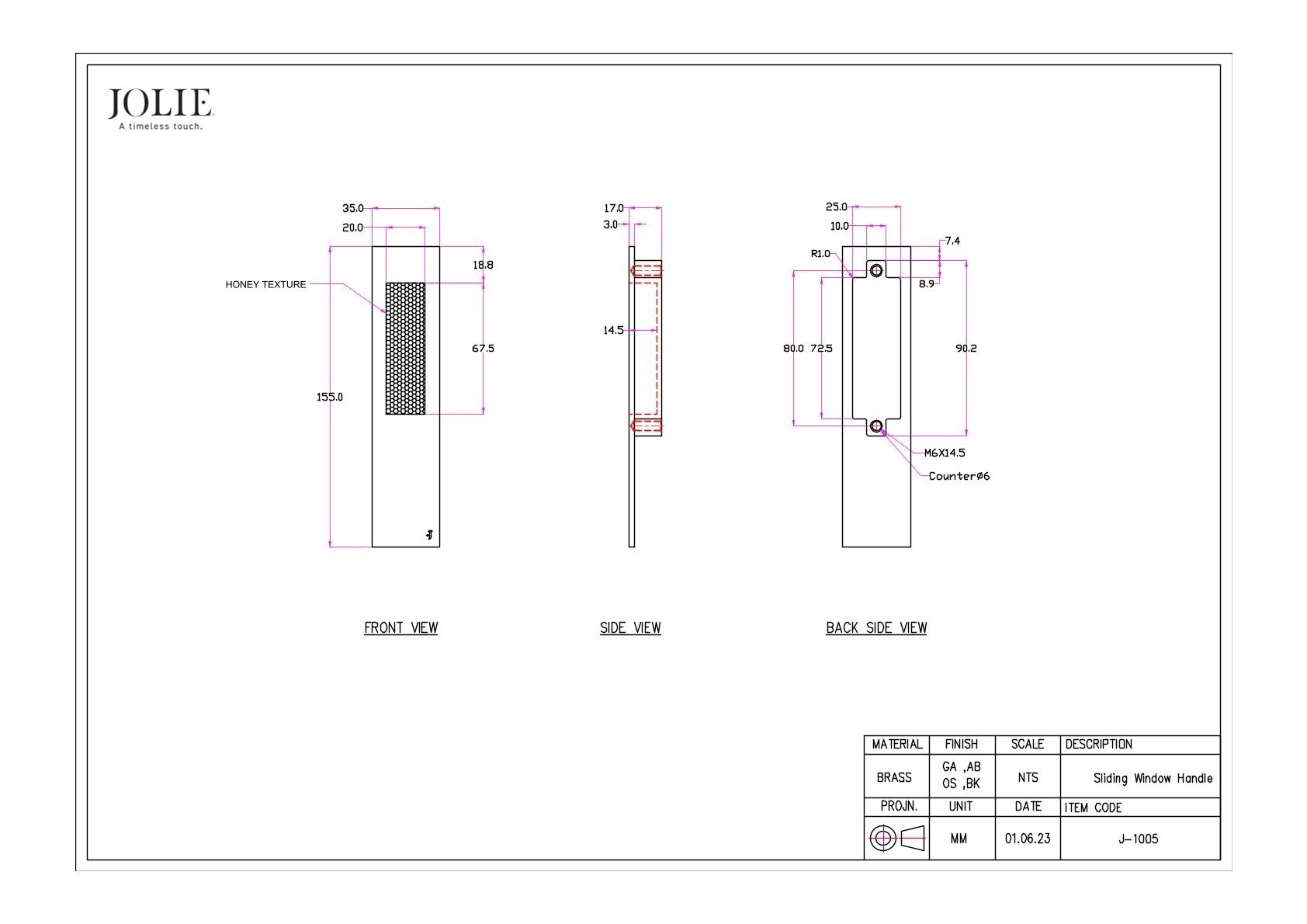 BITTE BEACHTEN SIE: Die Fenster-, Möbel- und Türbeschläge von JOLIE werden vollständig von Hand gegossen und veredelt. Jedes Stück ist ein Unikat mit individuellem Charakter und weist leichte Abweichungen in Größe, Textur und Farbe auf. Diese natürlichen Unterschiede zeugen von echter Handwerkskunst und machen jedes Stück einzigartig – keines gleicht dem anderen.