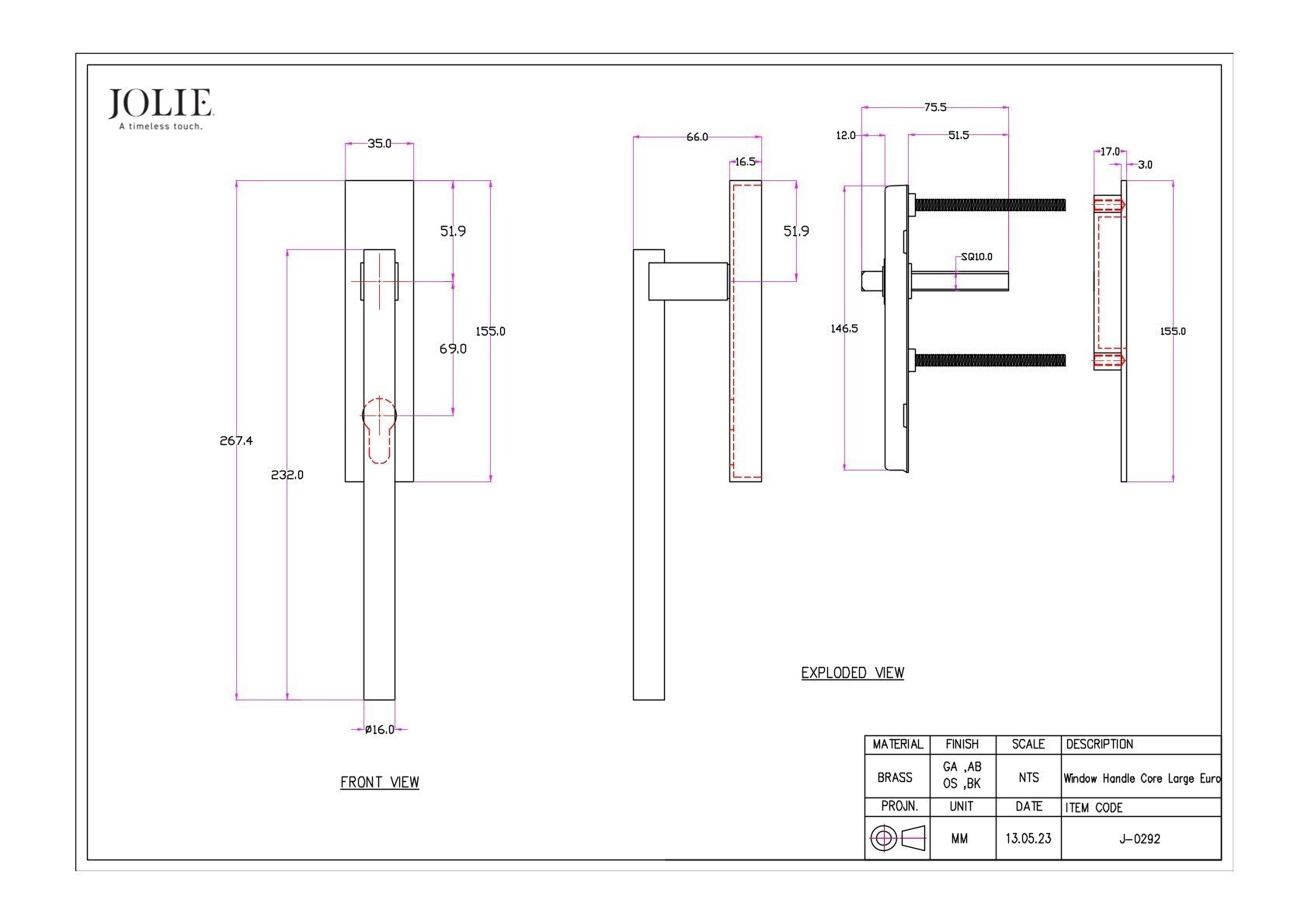 BITTE BEACHTEN SIE: Die Fenster-, Möbel- und Türbeschläge von JOLIE werden vollständig von Hand gegossen und veredelt. Jedes Stück ist ein Unikat mit individuellem Charakter und weist leichte Abweichungen in Größe, Textur und Farbe auf. Diese natürlichen Unterschiede zeugen von echter Handwerkskunst und machen jedes Stück einzigartig – keines gleicht dem anderen.
