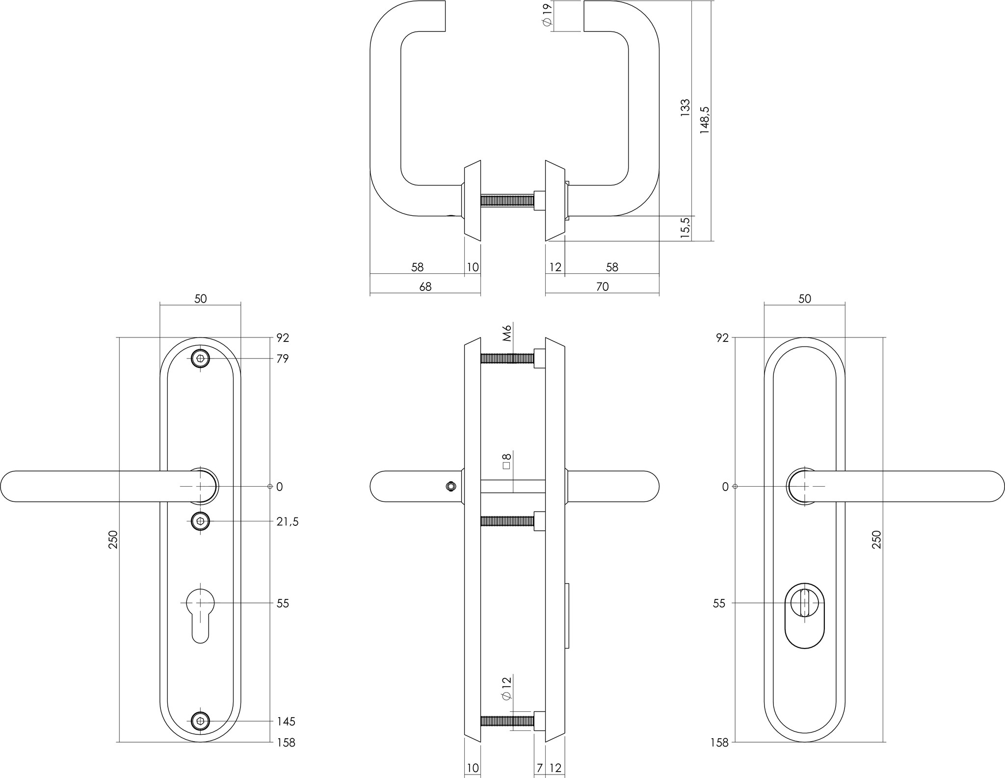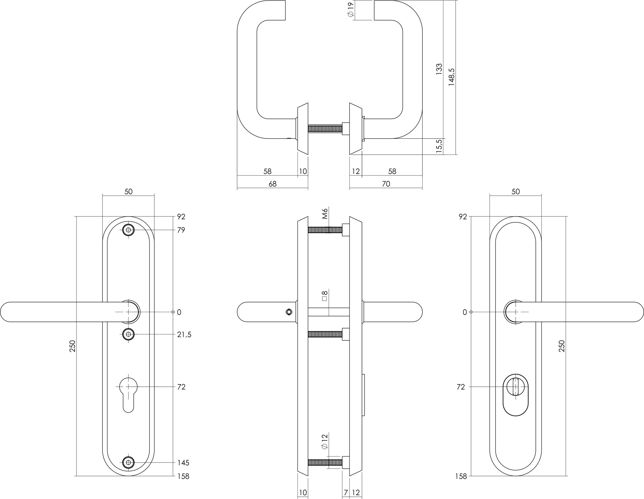 Dieser Satz Hintertürbeschläge auf ovalem Schild ist mit einem zusätzlichen Einbruchschutz ausgestattet und SKG***-geprüft . Zu diesem Set gehört ein passender moderner Türgriff mit beidseitig abgerundetem Ende.