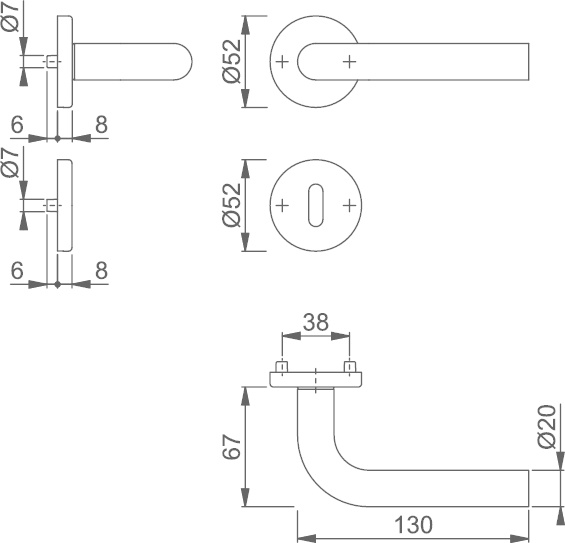 Türgriffe gibt es mit Schlüsselschild, mit Zylinderschild oder mit WC-Beschlag. Treffen Sie Ihre Wahl im Scrollmenü oben rechts.