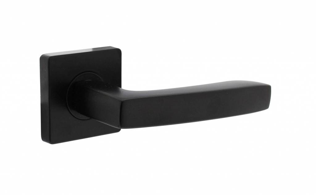 Dieser robuste Türgriff „Minos“ auf eckiger Rosette in mattschwarzer Ausführung wird paarweise geliefert.