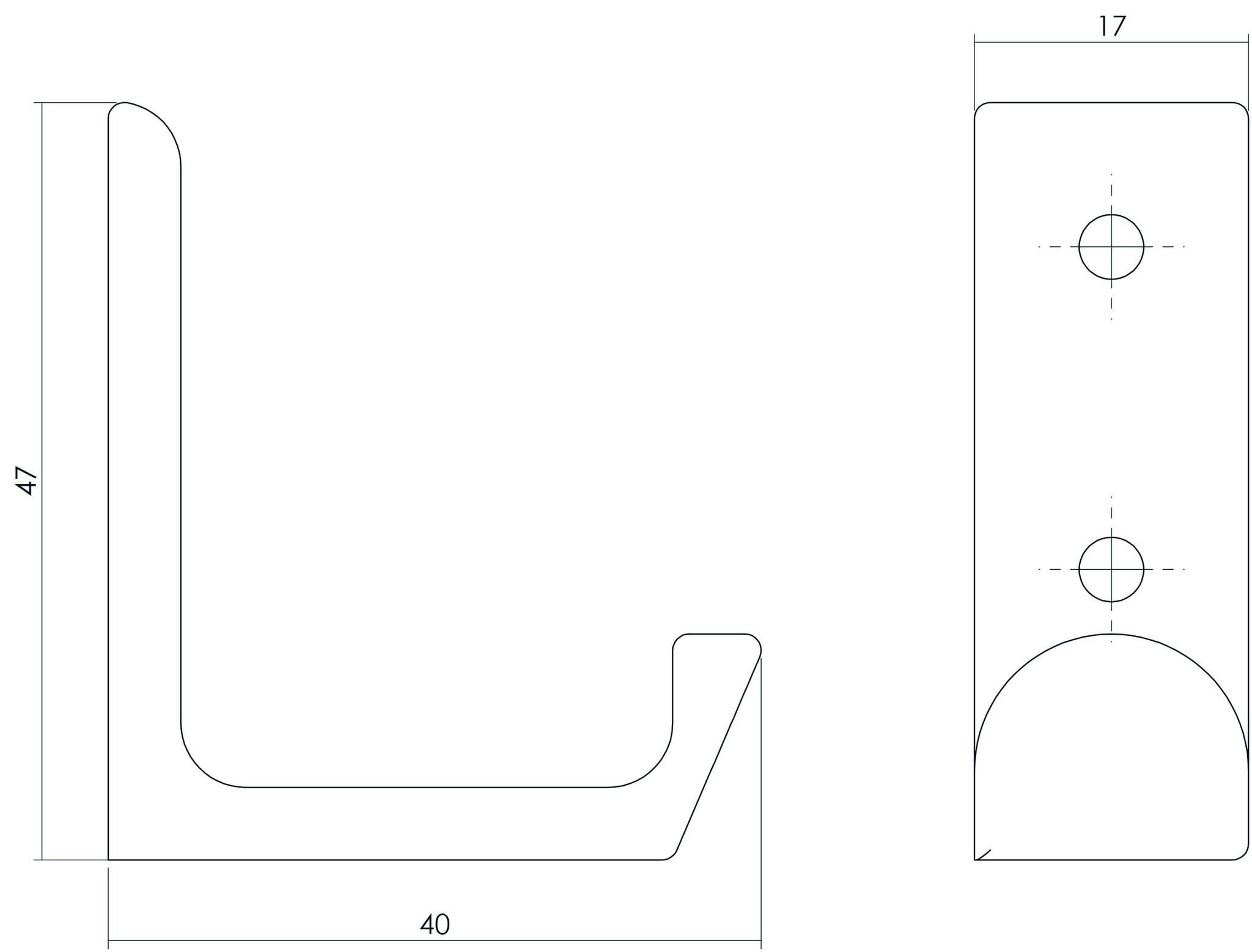 Gerader Intersteel Kleiderhaken aus gebürstetem Edelstahl mit vertikalen Befestigungslöchern