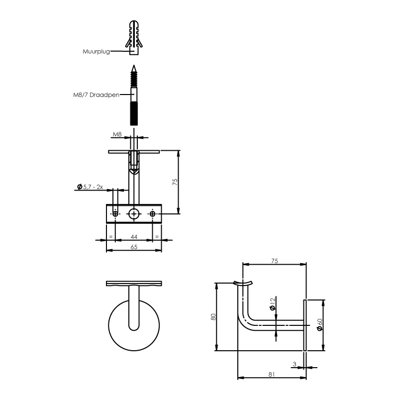 Mit diesem Handlaufhalter können Sie den Handlauf entlang der Wand führen und bieten Ihnen zusätzliche Sicherheit. Aufgrund der Verwendung von massivem Edelstahl hat dieser Handlaufhalter eine lange Lebensdauer.