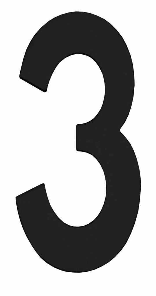 Hausnummer "3" mit einer Höhe von 150mm in mattschwarzer Ausführung