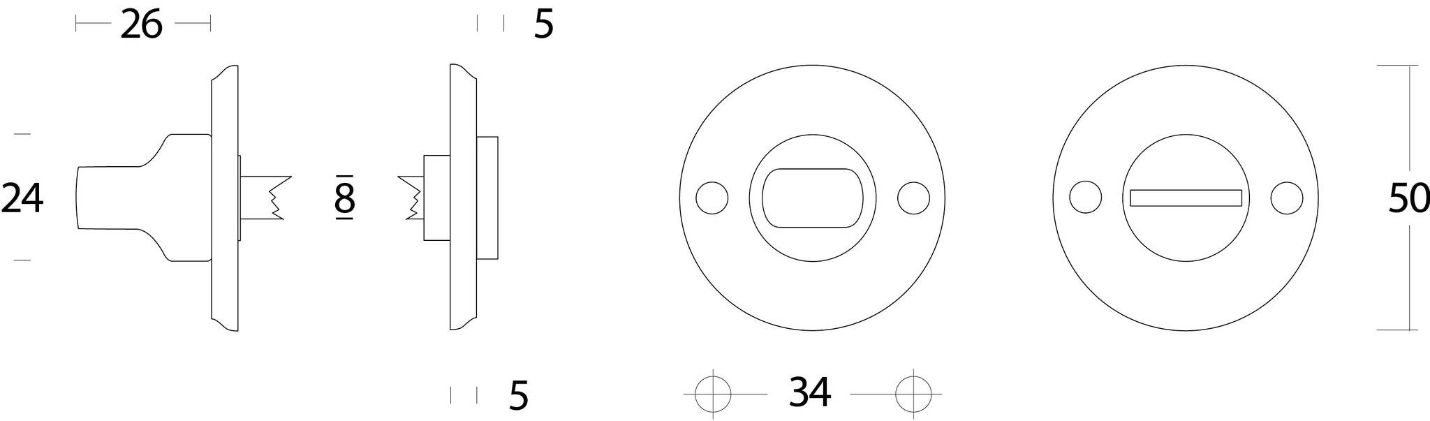 Dieser Nickel glänzende WC-Badverschluss wird pro Set inklusive Befestigungsmaterial und passendem Vierkantstift von 8x8mm geliefert. Die Schraubenlöcher in diesem Set sind bereits vorhanden und haben einen Abstand von 34mm.