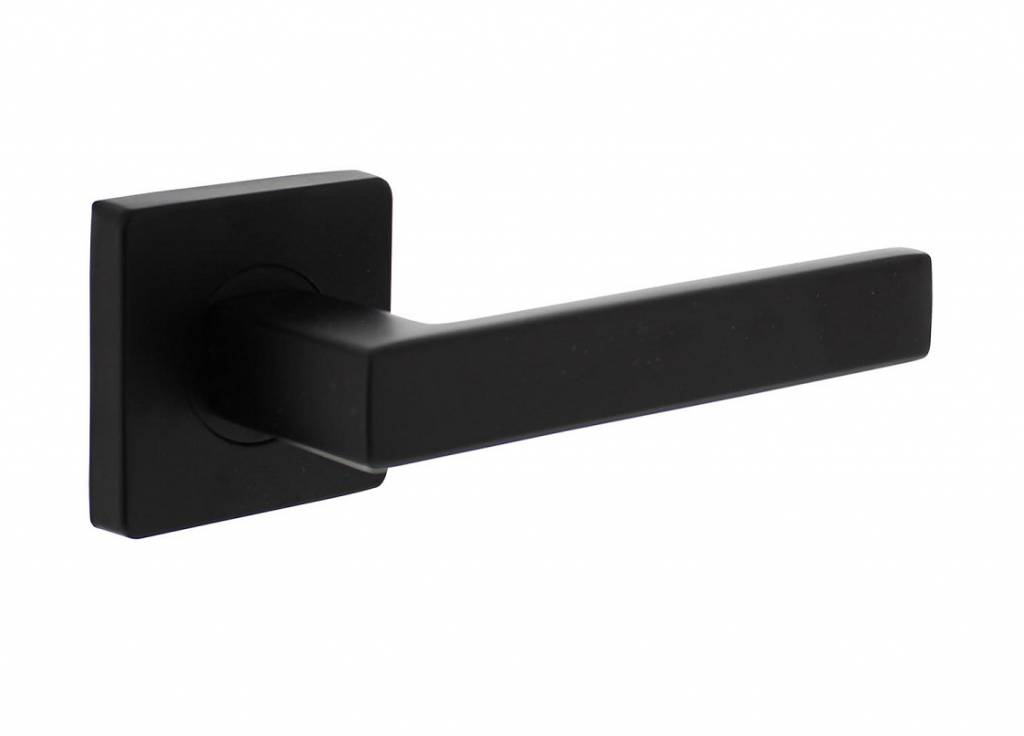 Schwarze Türdrücker "Hera" auf eckigen Rosetten ohne Schlüsselschilder