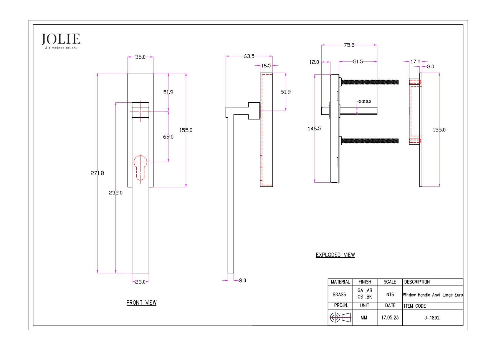 BITTE BEACHTEN SIE: Die Fenster-, Möbel- und Türbeschläge von JOLIE werden vollständig von Hand gegossen und veredelt. Jedes Stück ist ein Unikat mit individuellem Charakter und weist leichte Abweichungen in Größe, Textur und Farbe auf. Diese natürlichen Unterschiede zeugen von echter Handwerkskunst und machen jedes Stück einzigartig – keines gleicht dem anderen.