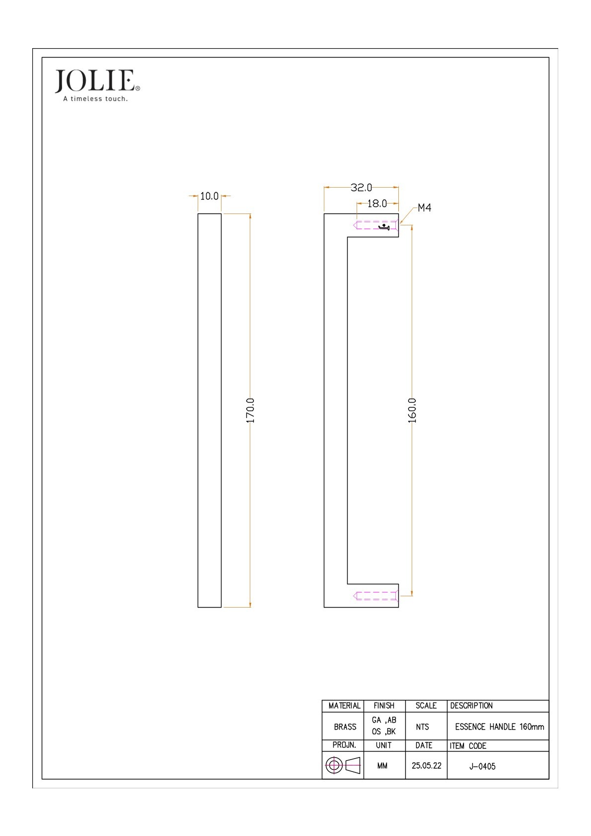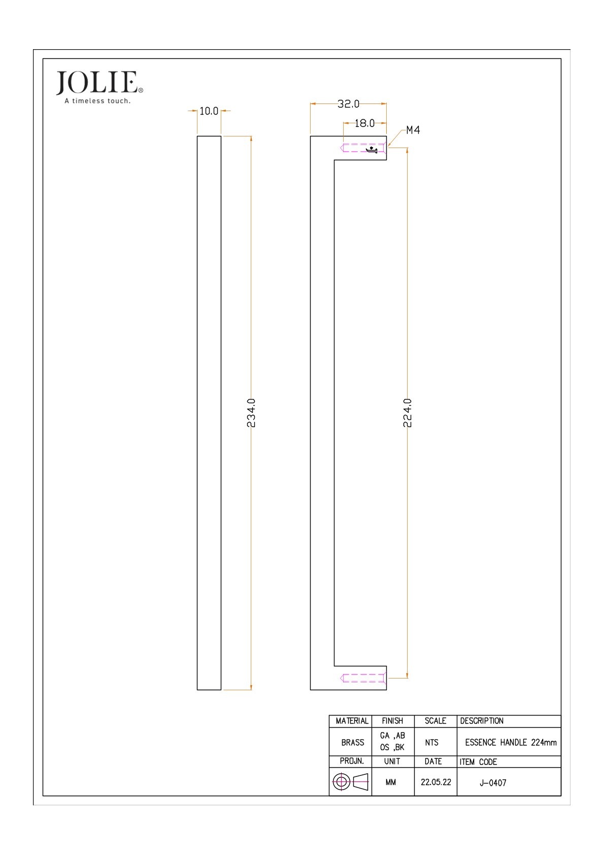 Die Möbelgriffe der Serie Essence von JOLIE vereinen dezentes Design mit hochwertiger Verarbeitung. Sie werden in traditioneller Sandgusstechnik aus massivem Messing handgegossen.