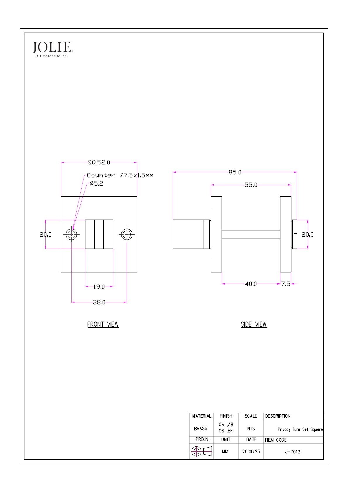 Das WC-Set JOLIE J-7012 verleiht Ihrer Inneneinrichtung einen eleganten Touch. Gefertigt aus massivem Messing und im handgegossenen Sandstrahlverfahren hergestellt, vereint es Stil und Langlebigkeit. Das quadratische Design (52 x 52 mm) mit seiner dezenten Rundung harmoniert perfekt mit modernen Türen und passenden Türbeschlägen. Erhältlich in den luxuriösen Ausführungen Antikgold , Antikbronze , Altsilber und Schwarz , verleiht es Türen und Schränken eine warme, charaktervolle Note.