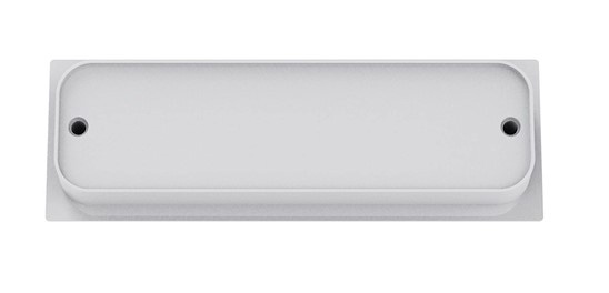 Rechteckiges Kapselungsgehäuse mit den Maßen 112 x 38 x 13 cm aus Zamak mit mattweißer Beschichtung