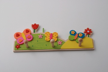 Kindergarderobe BUTTERFLIES 285 mm breit mit 3 Haken aus Holz