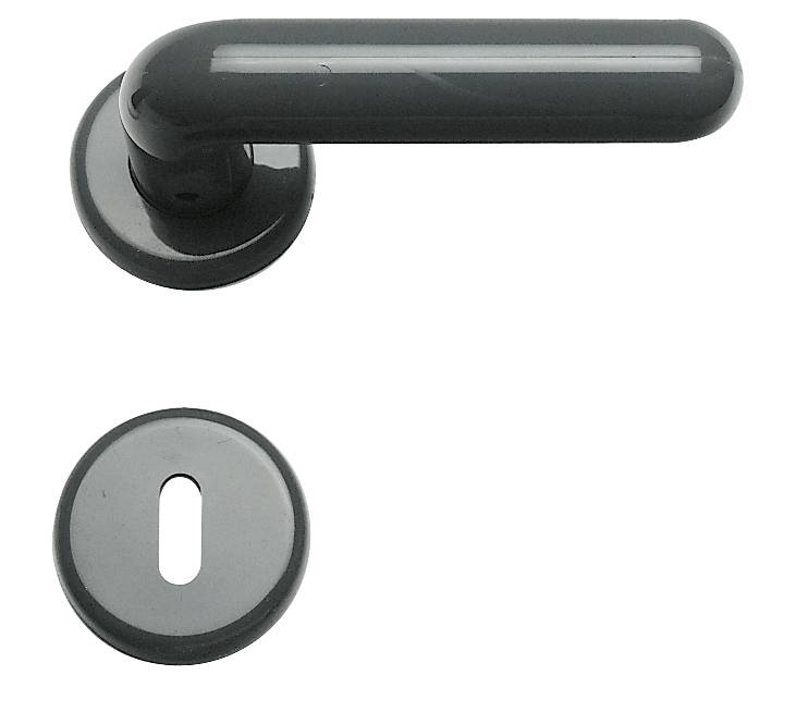Diese dunkelgrauen Türgriffe aus Kunststoff sind für Innentüren von 38–42 mm geeignet.