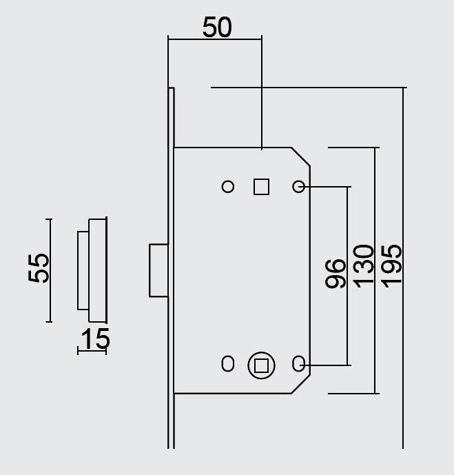 Magnetschloss AGB gold - Frontplatte 195x18mm - WC-Achsengröße 96mm
