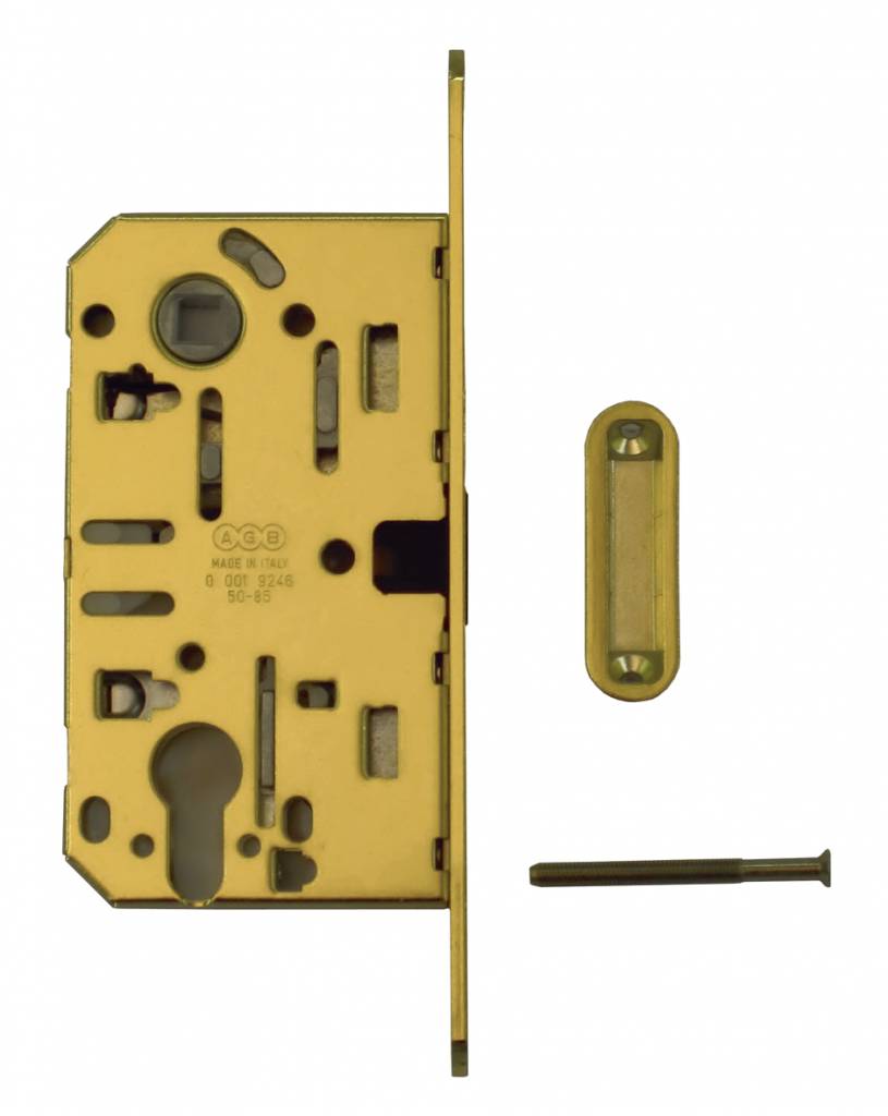 Diese goldenen Magnetschlösser von AGB eignen sich für Innentüren mit einem Zylinderloch von 85 mm und können sowohl links als auch rechts verwendet werden.