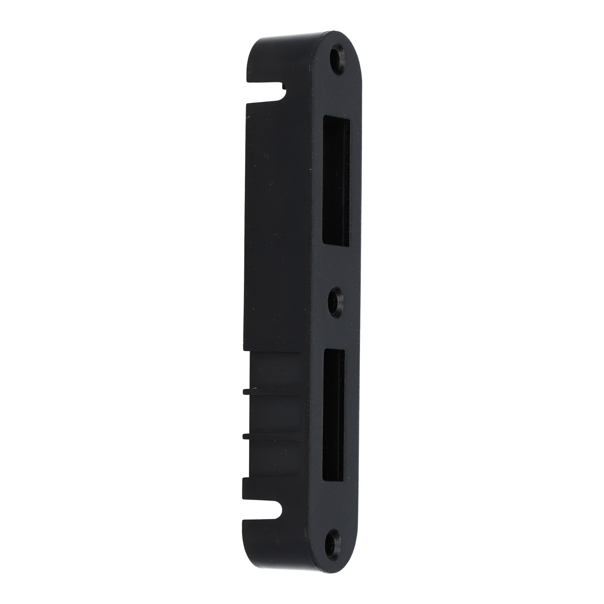 - Auf der Rückseite befinden sich Aussparungen für M4-Muttern. Bietet die Möglichkeit, das Schließblech mit M4x20-mm-Schrauben am Schließblech zu befestigen.