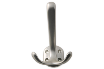 Beschreibung Doppelter Kleider-/Huthaken von 110 mm Höhe in Silberfarbe mit 4 Befestigungslöchern
