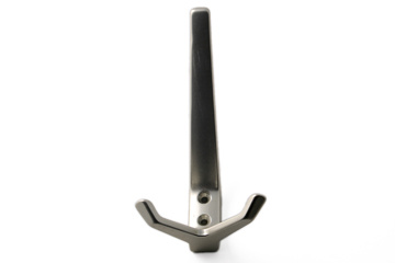 Doppelter Kleider-/Huthaken von 125 mm Höhe in Silberfarbe mit 2 Befestigungslöchern in vertikaler Richtung