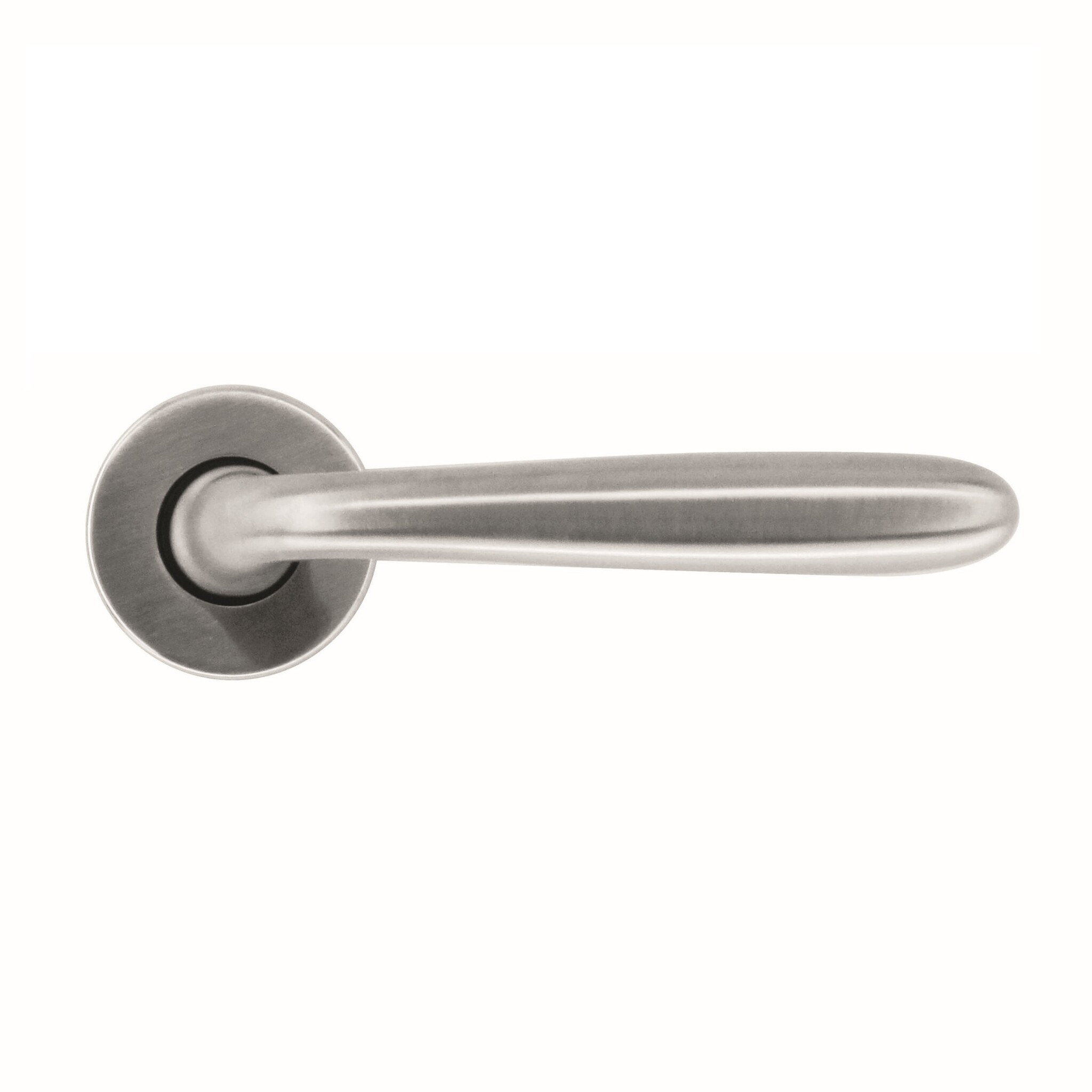 Die Basis dieser Türgriffe besteht aus Messing, anschließend wurden sie mit einem edelstahlfarbenen Finish versehen.