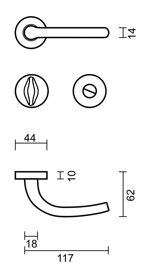 Diese Türgriffe sind in 4 Varianten erhältlich: ohne Schlüsselschilder, mit Schlüsselschildern, mit Zylinderschildern und mit WC-Beschlägen. Treffen Sie Ihre Wahl im Scrollmenü oben rechts .
