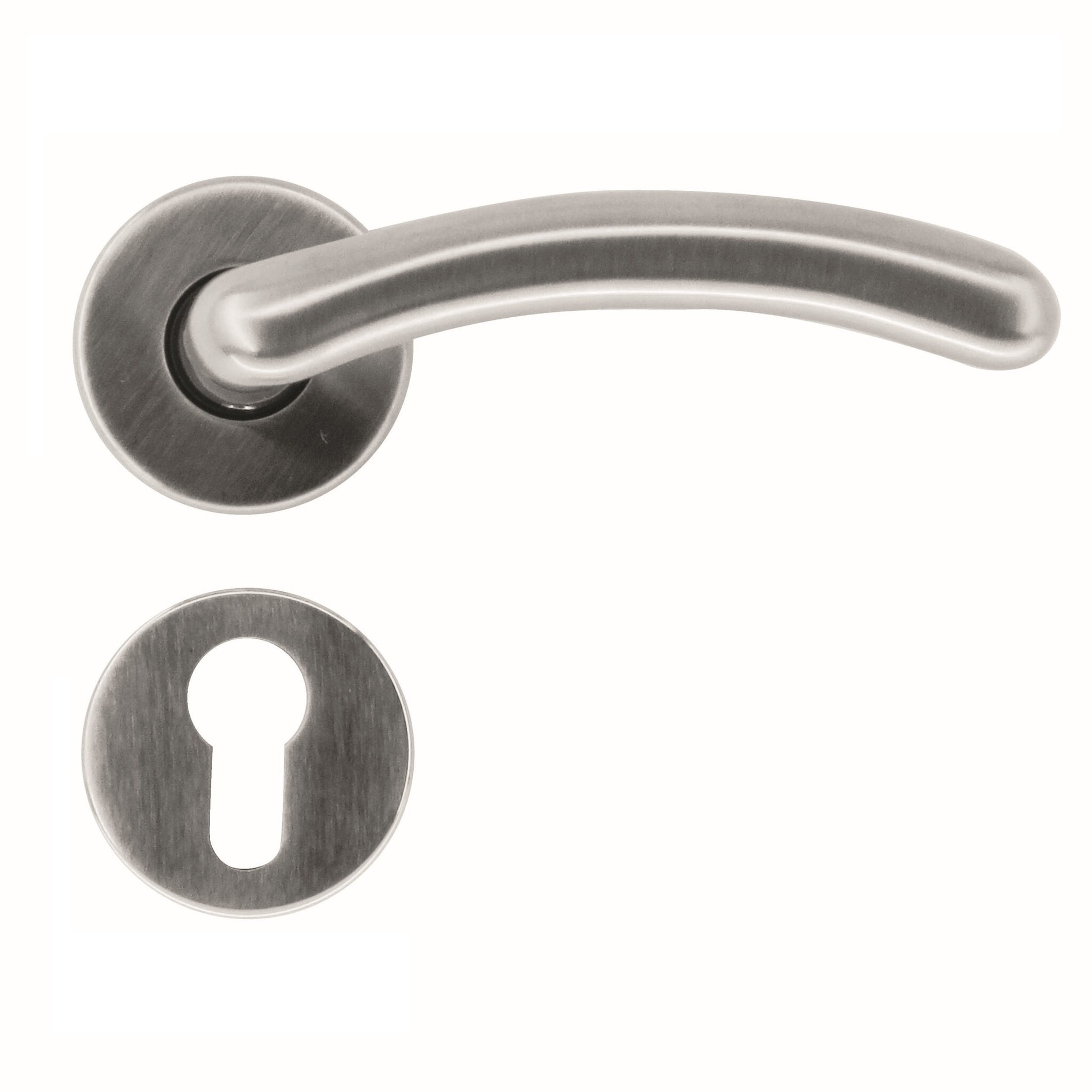 Diese Türgriffe sind in 4 Varianten erhältlich: ohne Schlüsselschilder, mit Schlüsselschildern, mit Zylinderschildern und mit WC-Beschlägen. Treffen Sie Ihre Wahl im Scrollmenü oben rechts .