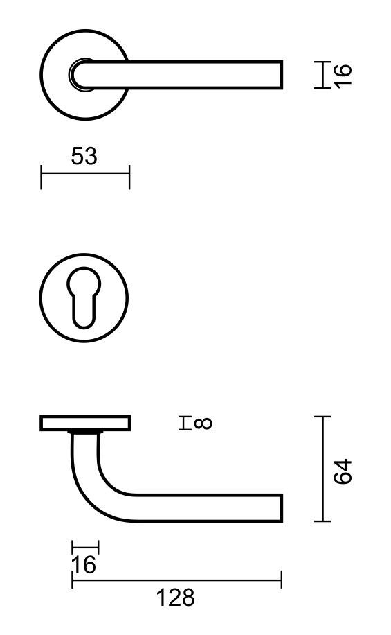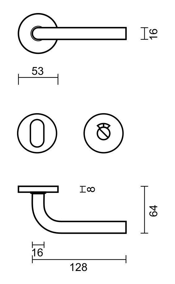 Diese Türdrücker sind in 4 Ausführungen erhältlich: ohne Schlüsselschild, mit Schlüsselschild, mit Zylinderschild und mit WC-Garnitur. Treffen Sie Ihre Auswahl im Scrollmenü oben rechts .
