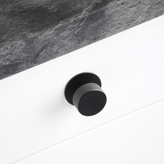 Mattschwarzer runder Möbelknopf Ø 33 mm aus Aluminium mit Kreuzrippenmuster