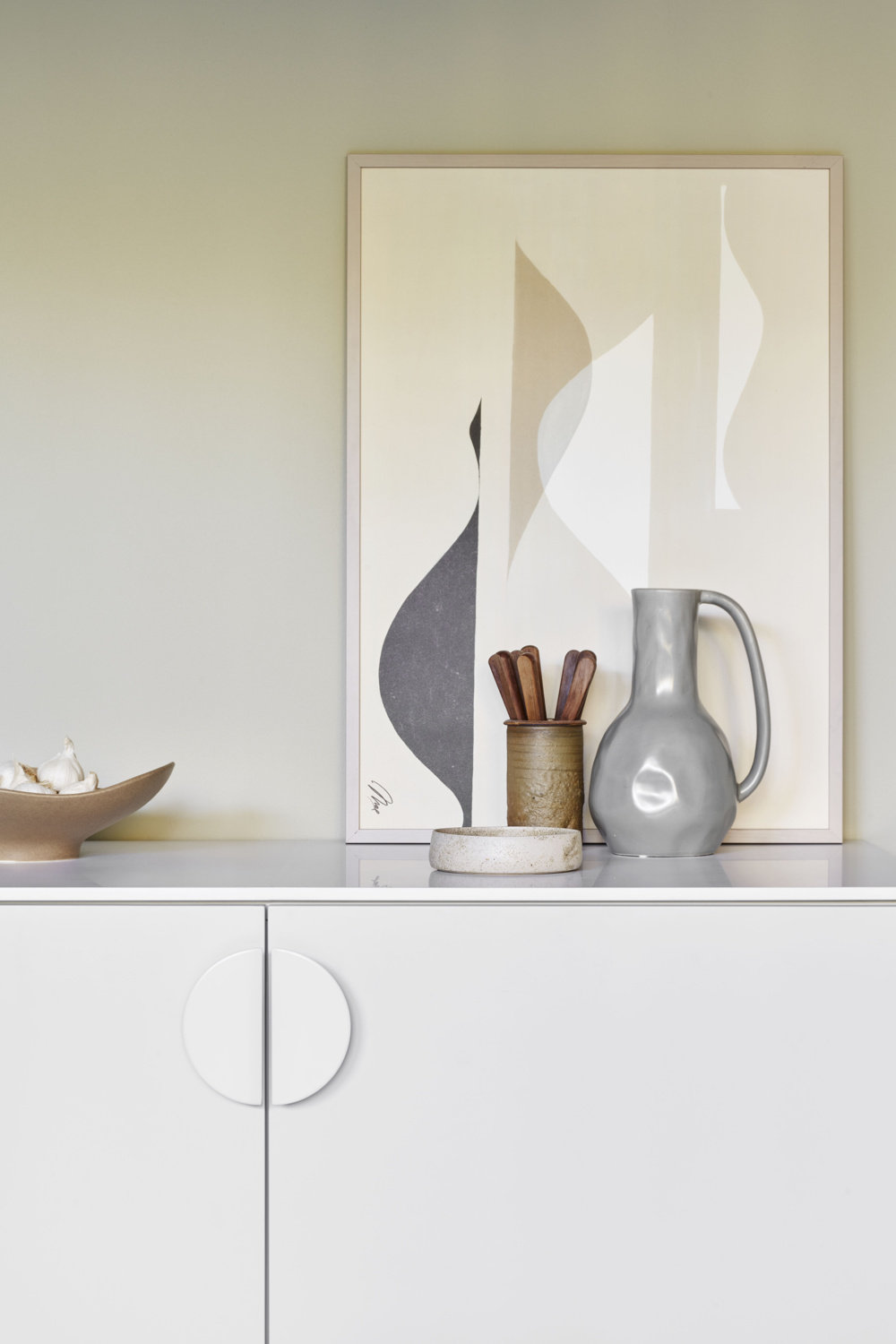Der Möbelgriff besteht aus einer Zinklegierung und ist mit einem mattweißen Finish versehen.