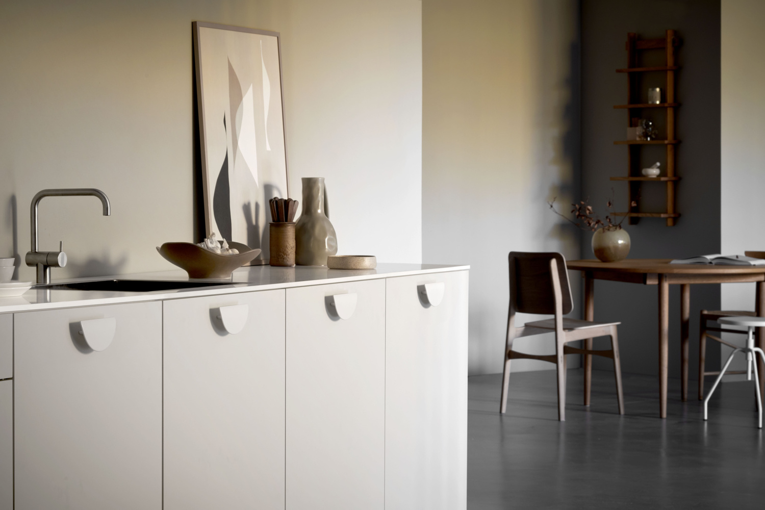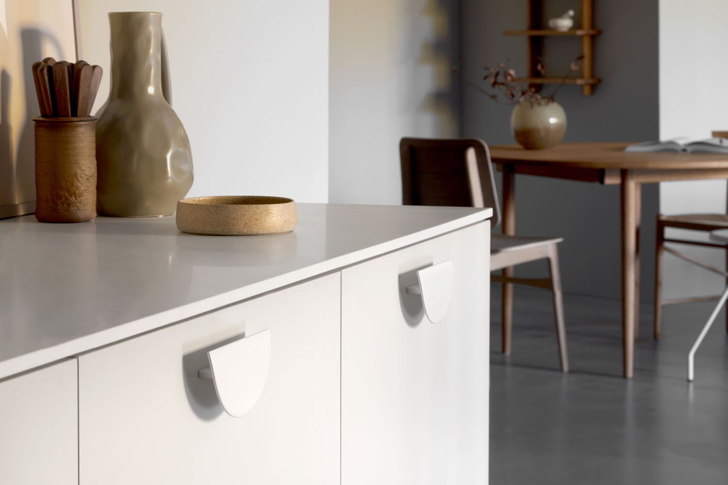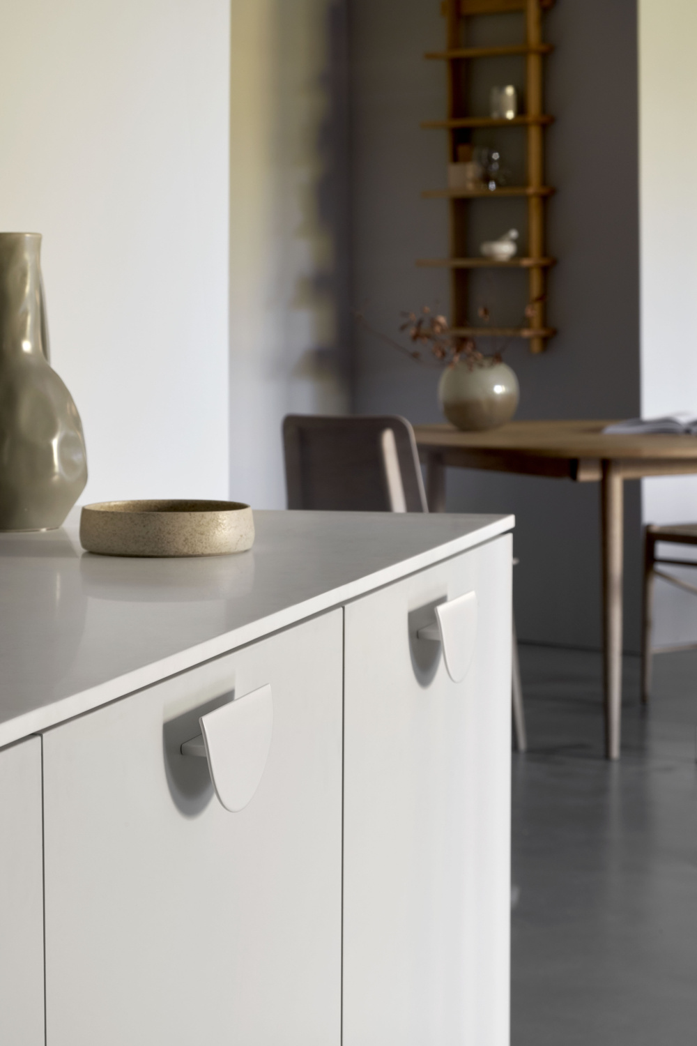 Der „HORIZON“-Griff scheint über der Plattenoberfläche zu schweben. Es hat eine sichelförmige Form und einen eleganten Übergang von flach zu gebogen in der Front.