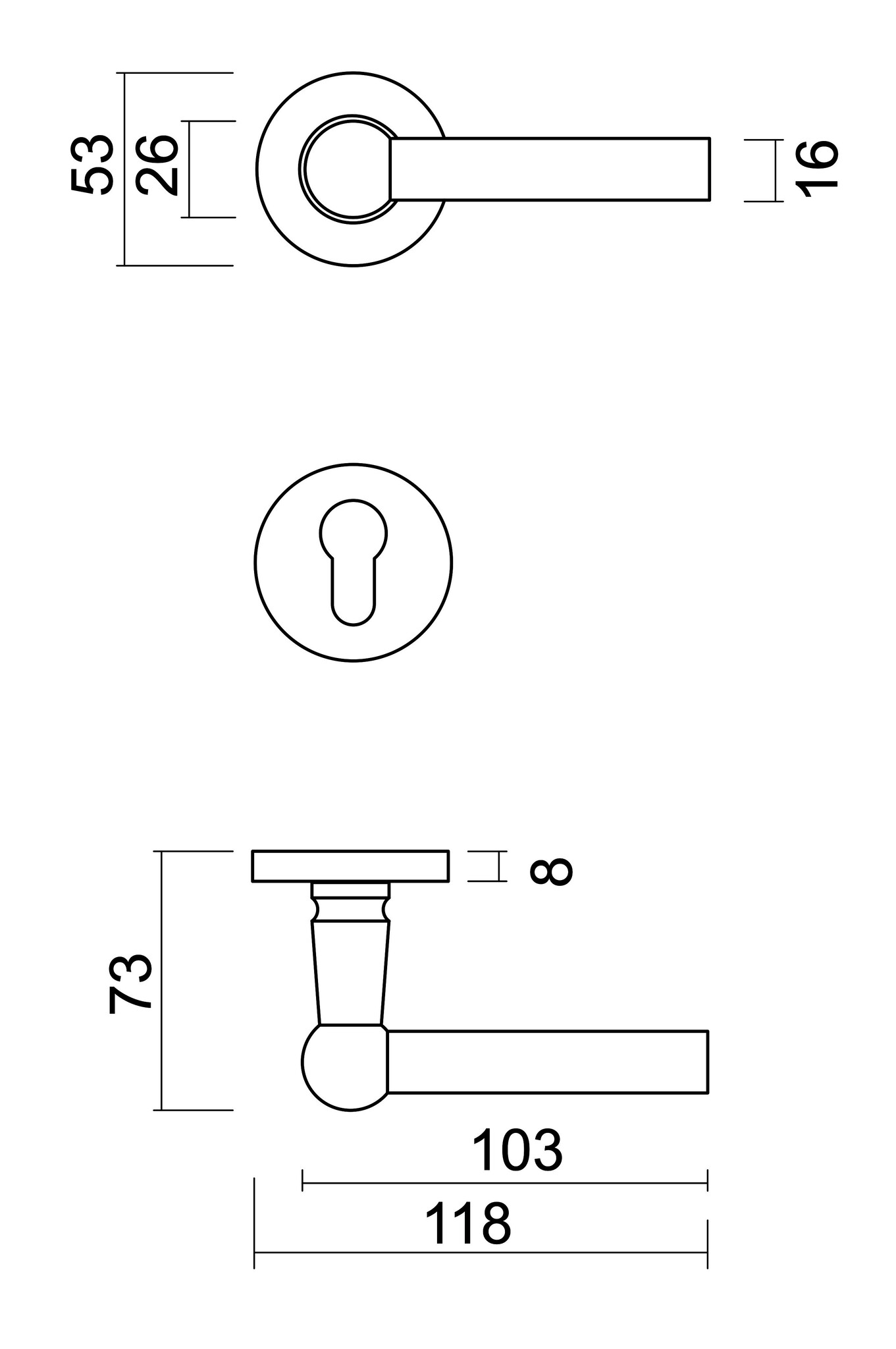 Diese Türgriffe sind in vier Ausführungen erhältlich: ohne Rosette, mit Rosette, mit Zylinderrosette und mit WC-Armaturen. Treffen Sie Ihre Auswahl im Scrollmenü oben rechts .