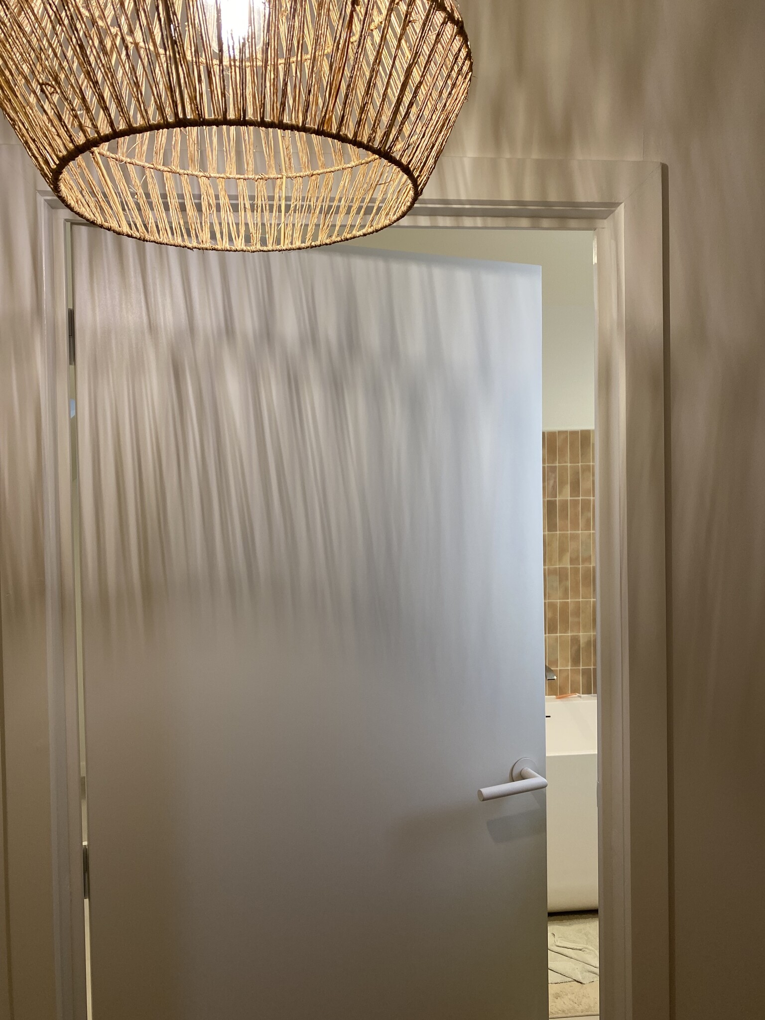 Diese weißen Türgriffe sind auf runden Rosetten mit Ø 54,5 mm montiert und nur 3 mm dick!