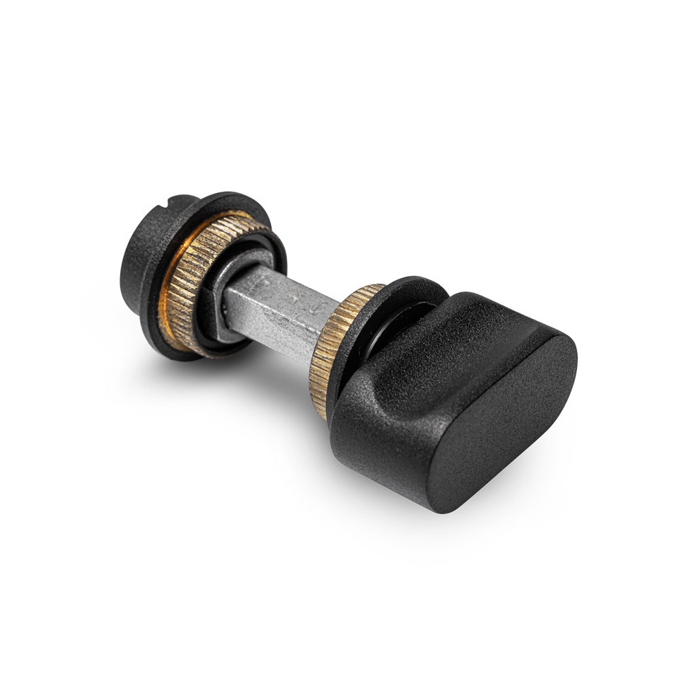 Dieser schwarze Frei- und Belegverschluss auf minimalistischen Rosetten wird paarweise inklusive Rosetten, Inbusschlüssel und Vierkantstift 8x8mm geliefert.