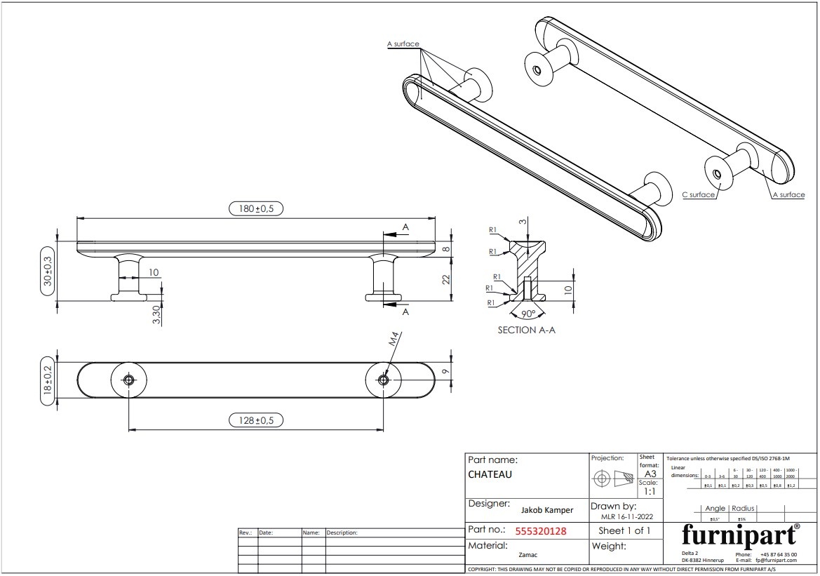 Der CHATEAU-Möbelgriff legt großen Wert auf die Materialien kombiniert mit einem ausgewogenen Detaillierungsgrad, der jedes Interieur auf ein klassisches und zeitloses Niveau hebt. Mit einer leicht vertieften Mitte lädt es den Verbraucher ein, mit dem Design zu interagieren.