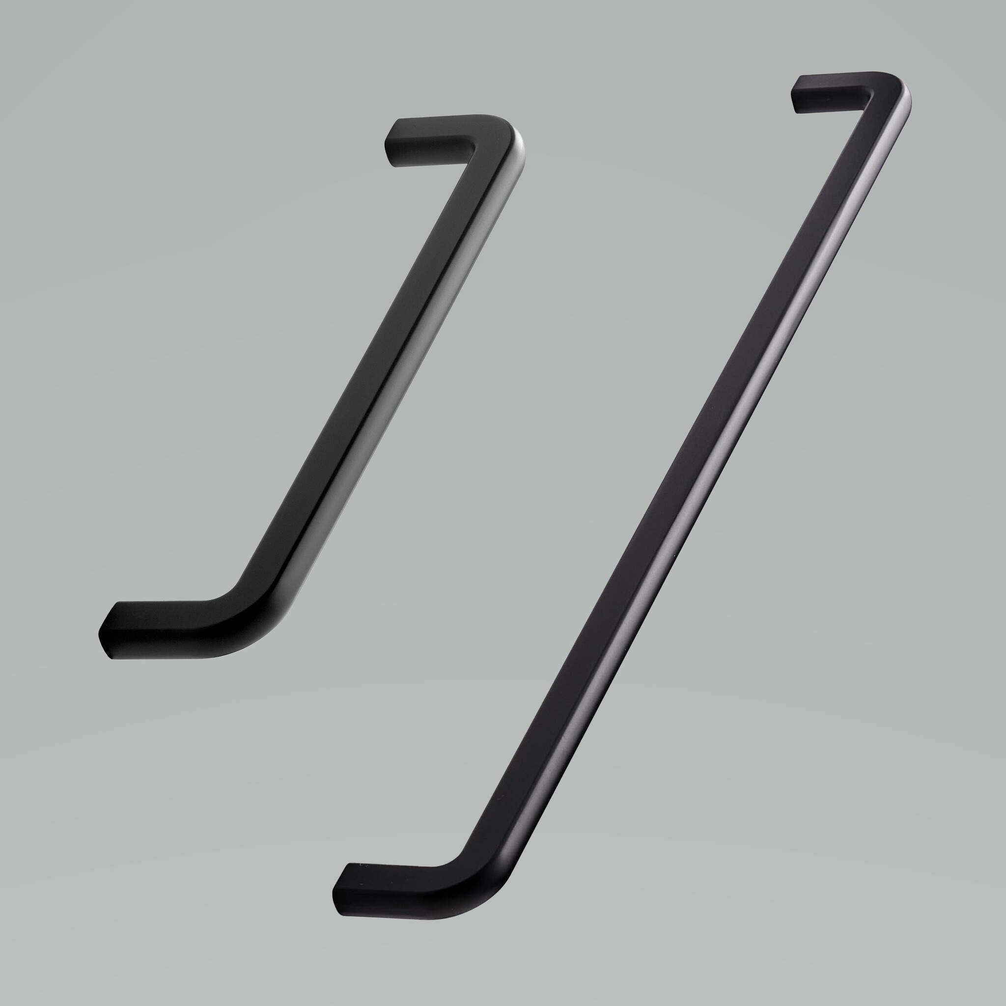 Wunderschöne, elegante, schlichte Möbelgriffe von Furnipart aus Zamak gefertigt und mit einer starken mattschwarzen Pulverbeschichtung versehen.