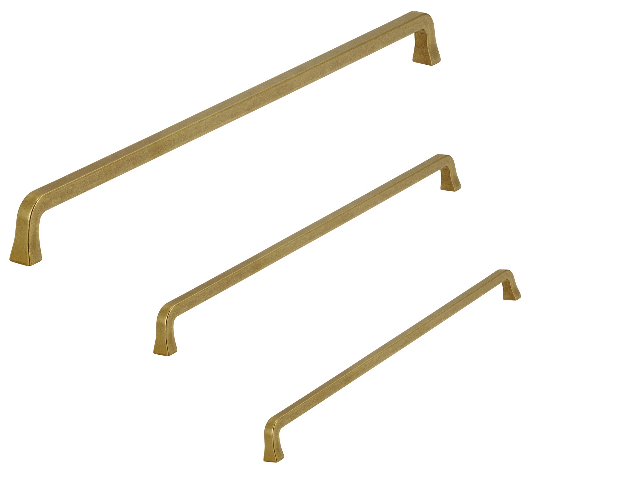 Dieser U-förmige Möbelgriff ist aus Zamak gefertigt und anschließend mit einer Vintage-Goldbeschichtung versehen, die gebürstet wird, um den alten Look zu erhalten und beizubehalten. Die abgerundeten Ecken in Kombination mit einer etwas breiteren Basis sind ein schönes Merkmal dieses Möbelgriffs.