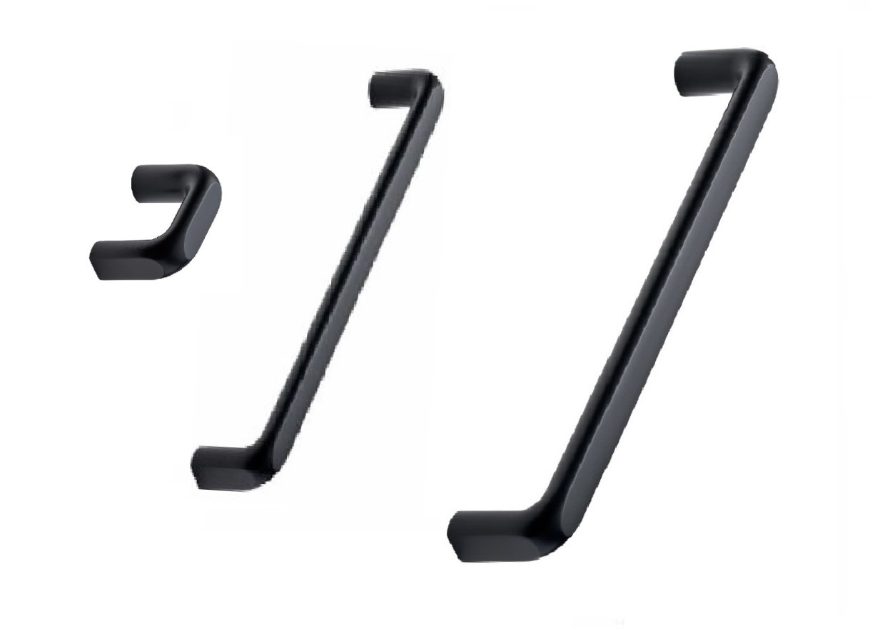 Diese Möbelgriffe aus Zamak haben eine mattschwarze Endbeschichtung und sind in verschiedenen Längen erhältlich, die Sie im Scrollmenü oben rechts auswählen können.