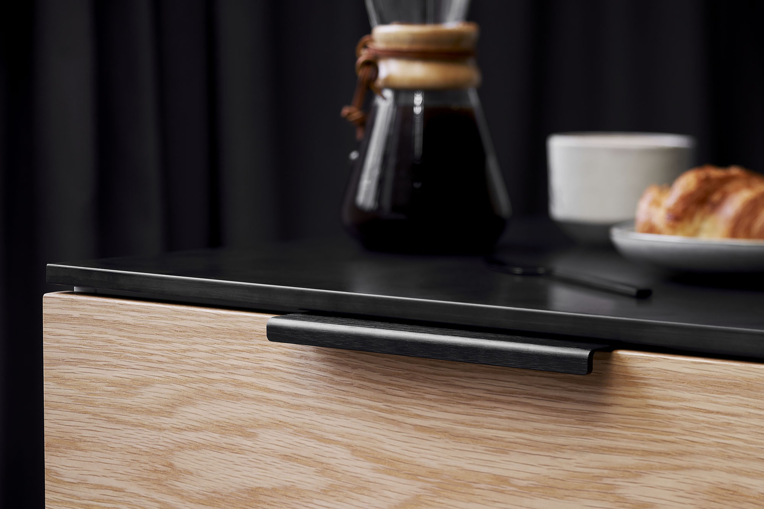 Artisan ist ein Möbelgriff mit raffiniertem, minimalistischem Design. Die ultraschlanke, filigrane Form und die weichen Linien sorgen für ein ruhiges, elegantes Erscheinungsbild. Der Griff folgt den Konturen der Möbel, auf denen er platziert wird, und sorgt für dezenten Luxus.