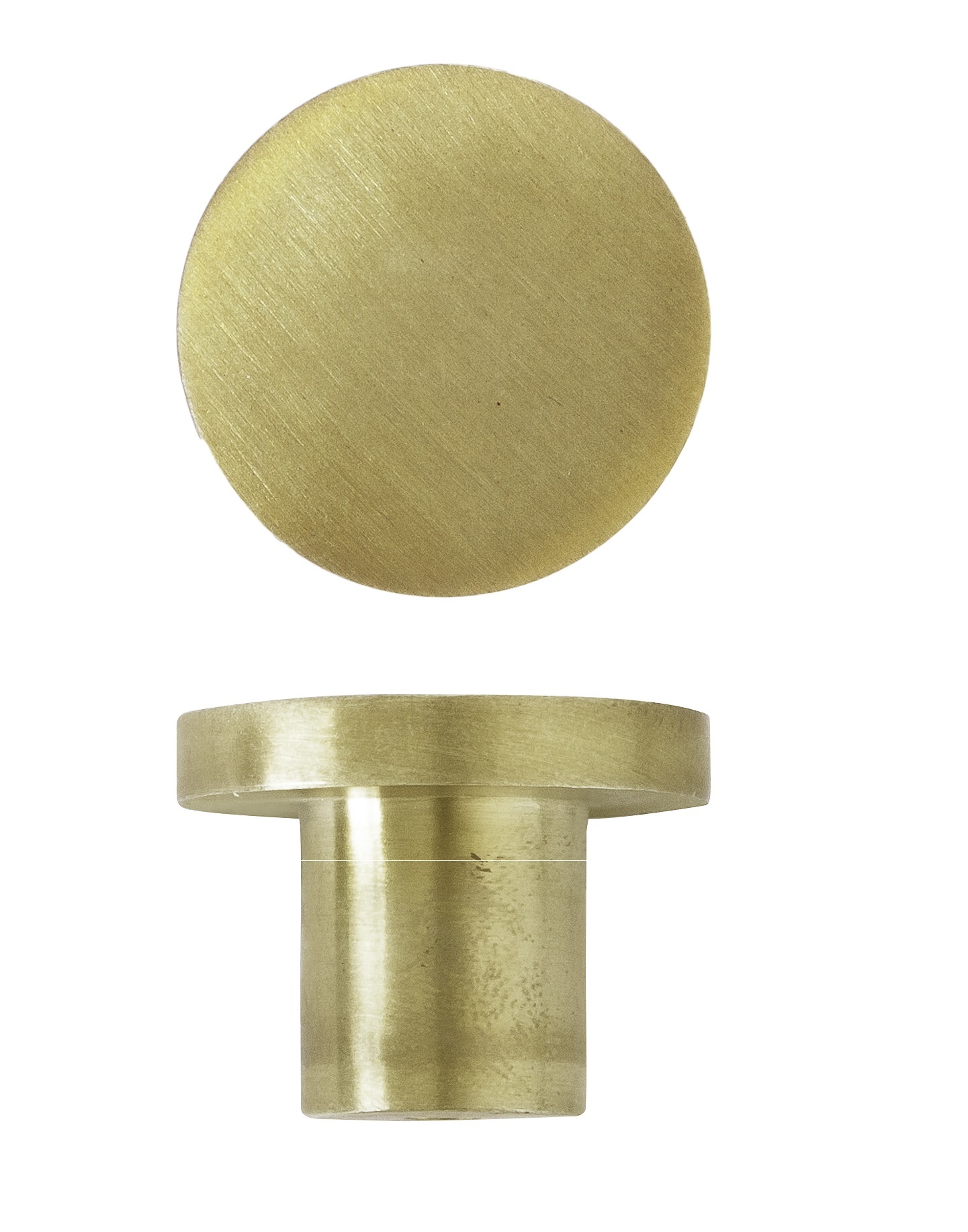 Dieser runde Knopf mit einem Ø von 35 mm und einer Dicke von 6 mm weist insgesamt 31 mm auf. Der Messingknauf wird pro Stück inklusive einer M4 Befestigungsschraube geliefert.