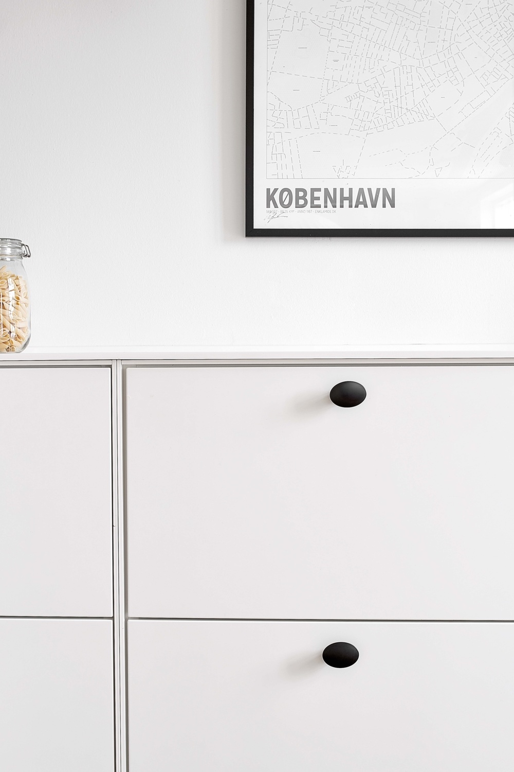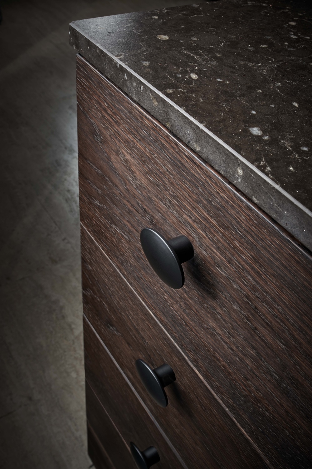 Der ovale Möbelknopf besteht aus Zamak und ist mit einem mattschwarzen Finish versehen