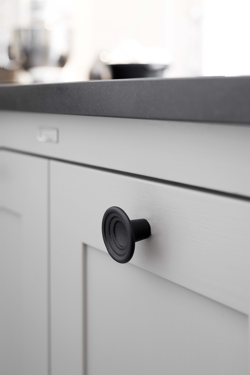 Beschreibung Ländlicher Möbelknopf von Furnipart, entworfen vom Designstudio Kamper Form aus Gusseisen mit mattschwarzer Strukturoberfläche