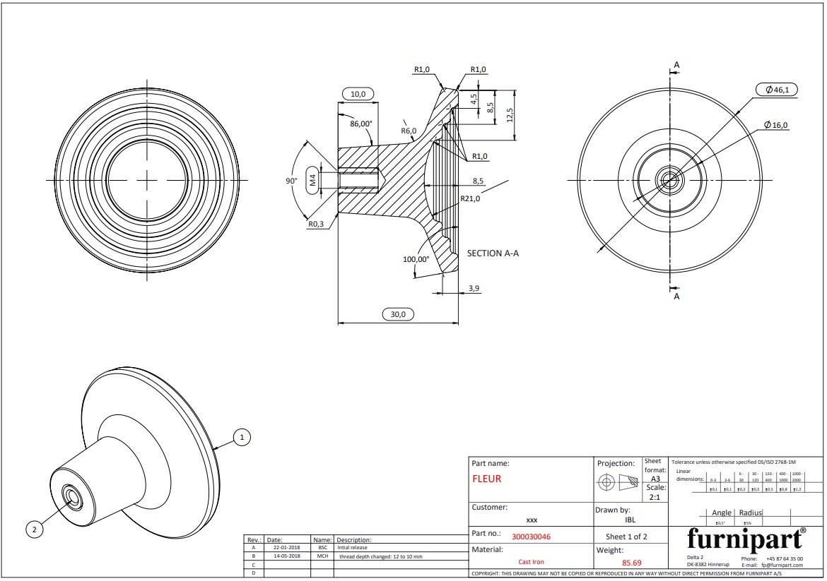 Furnipart Möbelknopf FLEUR – Gusseisen mattschwarz