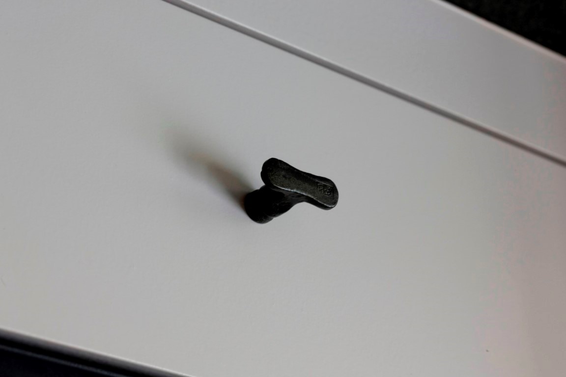 Möbelgriff PBU 37 aus gealtertem Eisen, auch „Schmetterlingsknauf“ genannt, ist in zwei Größen und auch als Griff erhältlich.