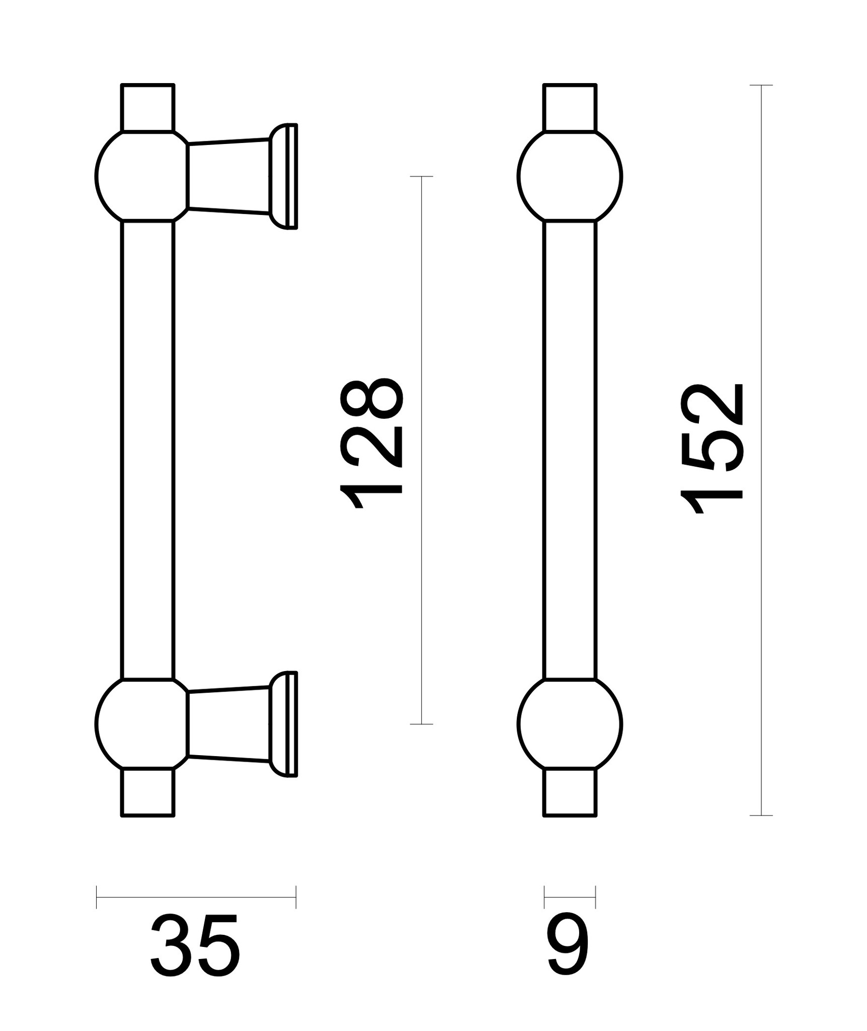 Dieser schwarze Möbelgriff aus Messing mit Kugelecken hat eine Stärke von Ø 9 mm und steht 35 mm hervor.