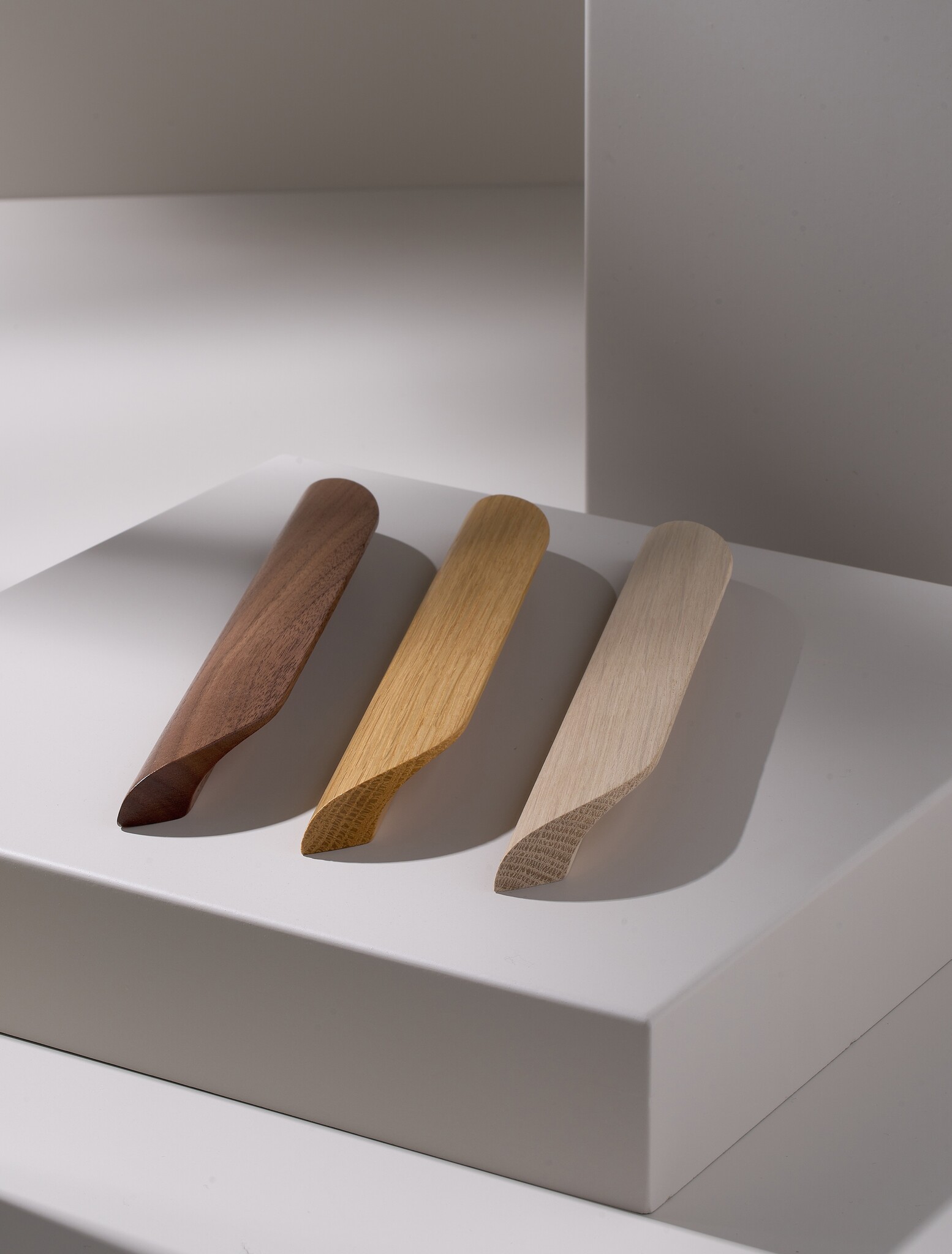 Möbelgriffe aus der neuen Kollektion 2024 von Furnipart aus Holz mit oder ohne Lackschicht als Finish