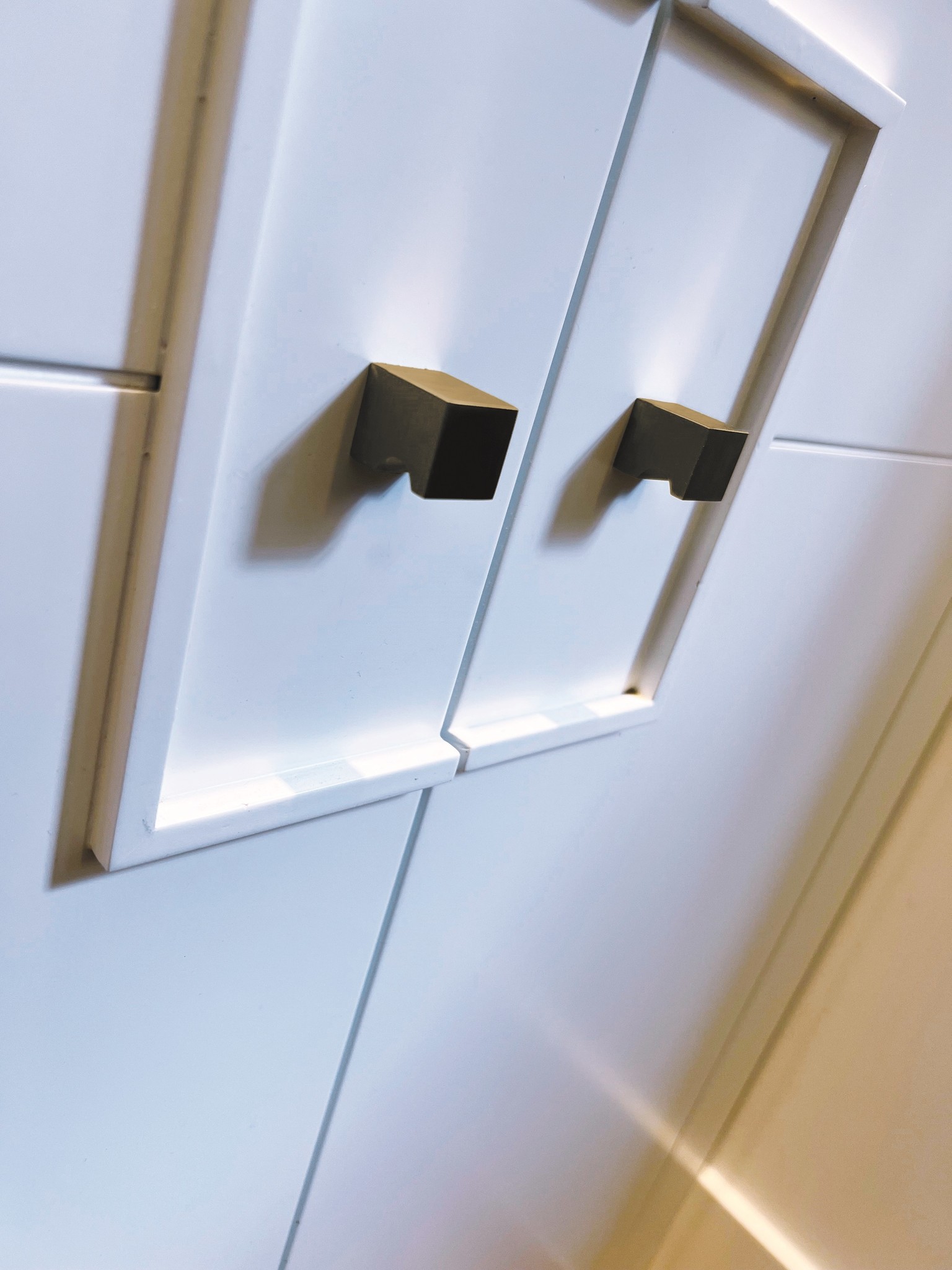 Quadratischer Schrankgriff Cubica oben – Mattgold