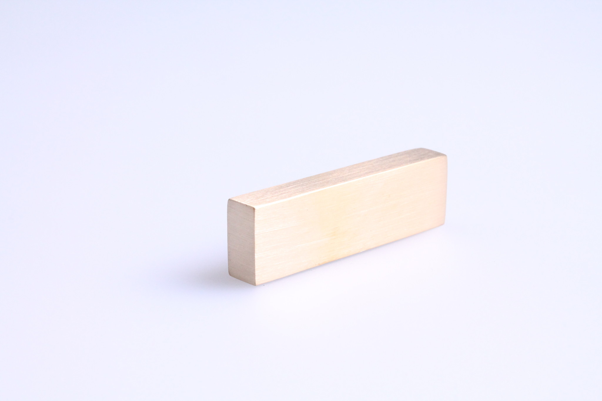 Moderner rechteckiger Möbelknopf aus Messing, der an den Enden gebürstet ist, um die Messingoptik zu erhalten.